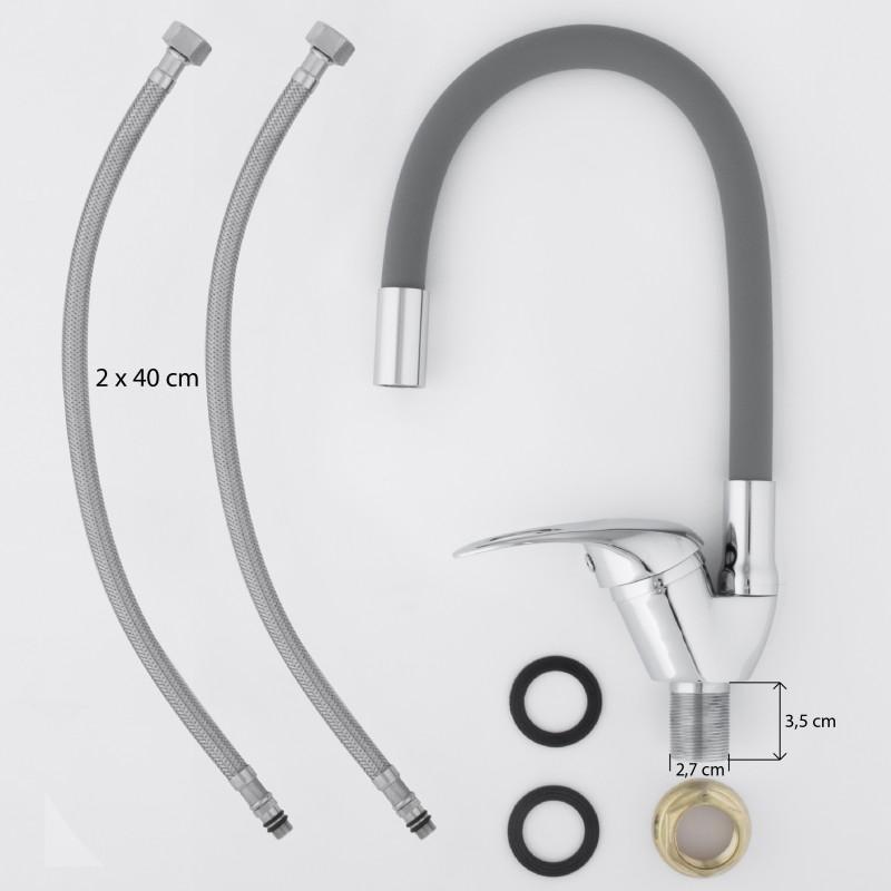 DuraHome Baterie umyvadlová, dřezová, BOA NOVA 50455, stojánková, šedá