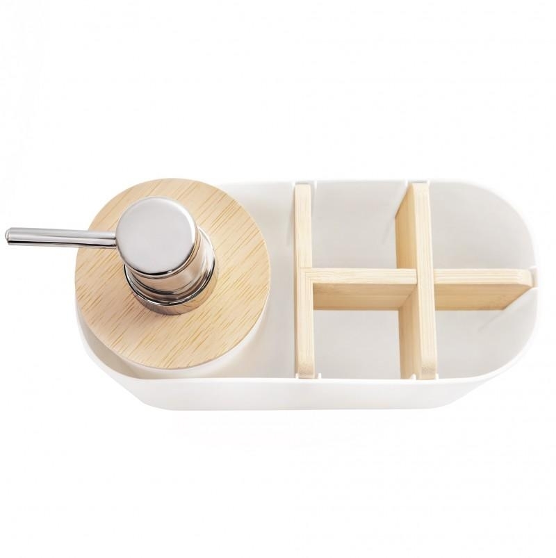 Díky integrovanému provedení šetří místo na umyvadle a pomáhá udržet koupelnu přehlednou. Pohyblivá přepážka ve stojánku umožňuje hygienické uspořádání kartáčků a usnadňuje čištění. Spojení bílé barvy a přírodního bambusu dodává sadě teplý, moderní charakter, který se skvěle hodí do koupelen ve skandinávském, moderním i boho stylu.
