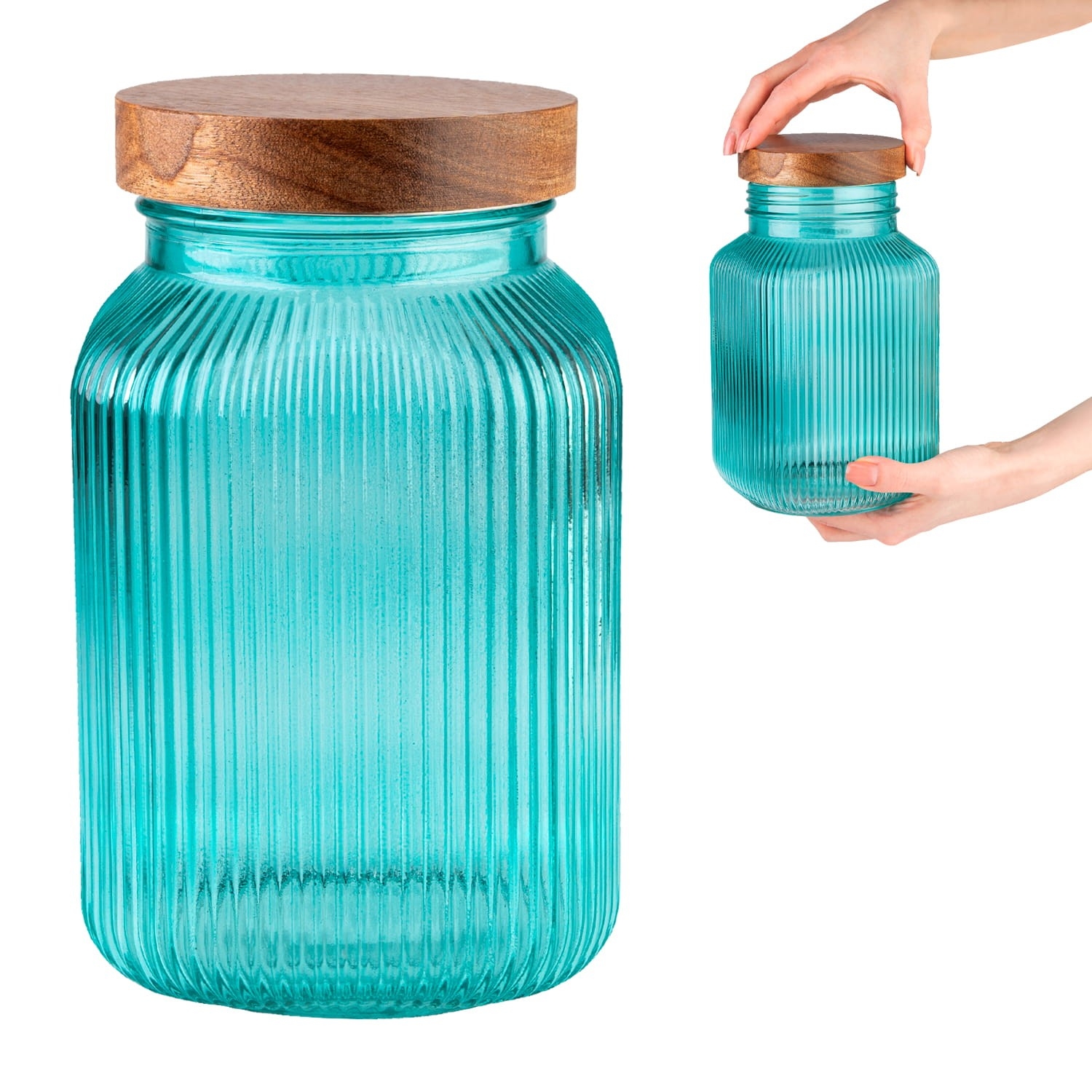 Váš dotaz na zboží Dóza s dřevěným šroubovacím uzávěrem, 2l, tyrkys