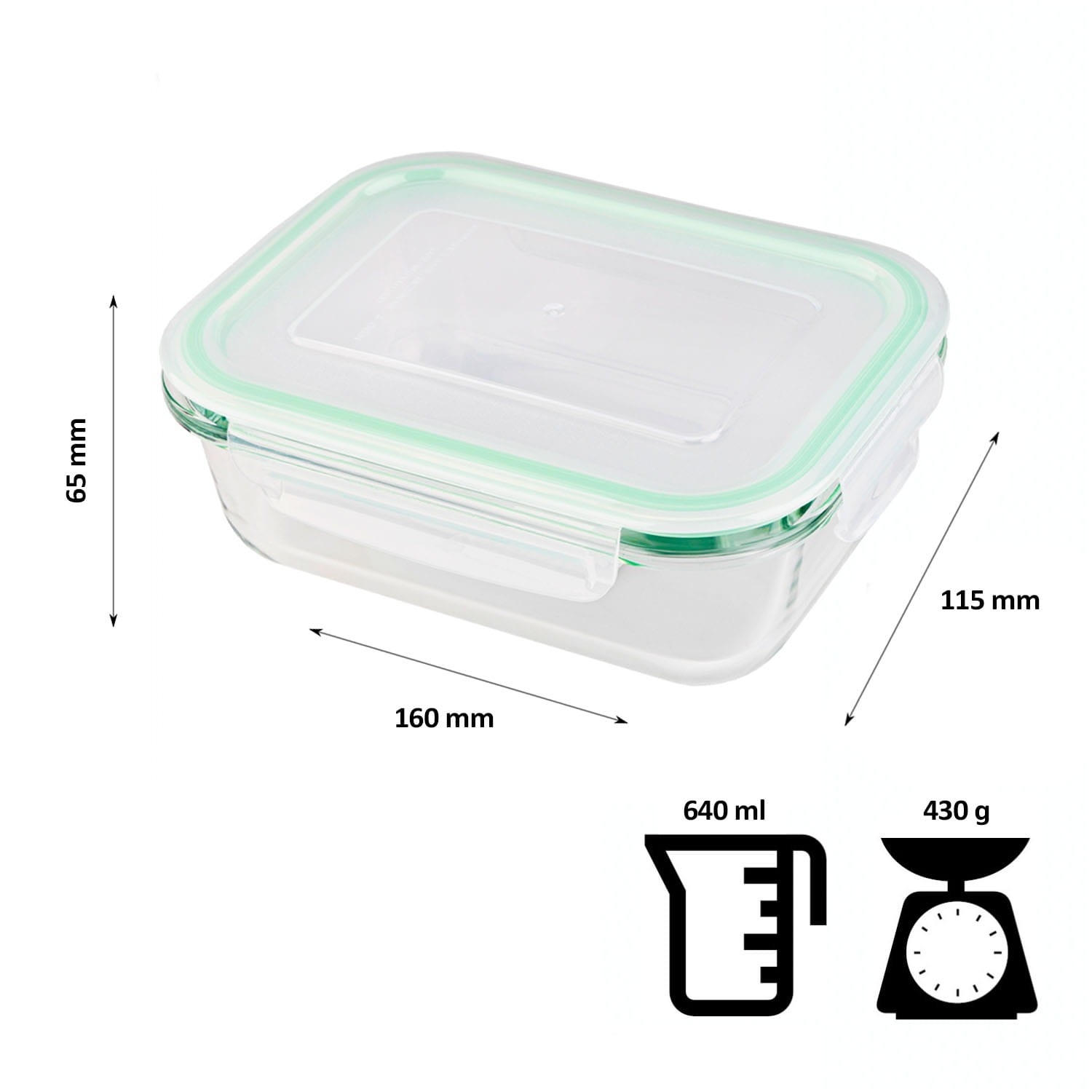 Praktická hermetická skleněná dóza o objemu 640 ml je ideální pro skladování i přípravu jídel. Díky odolnému sklu a pevnému víku udrží potraviny čerstvé a bezpečně uložené doma i na cestách.