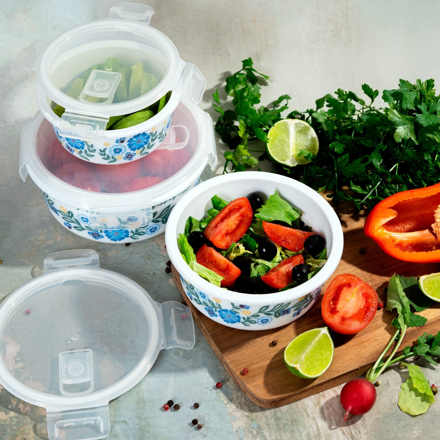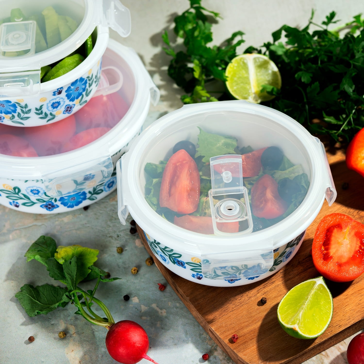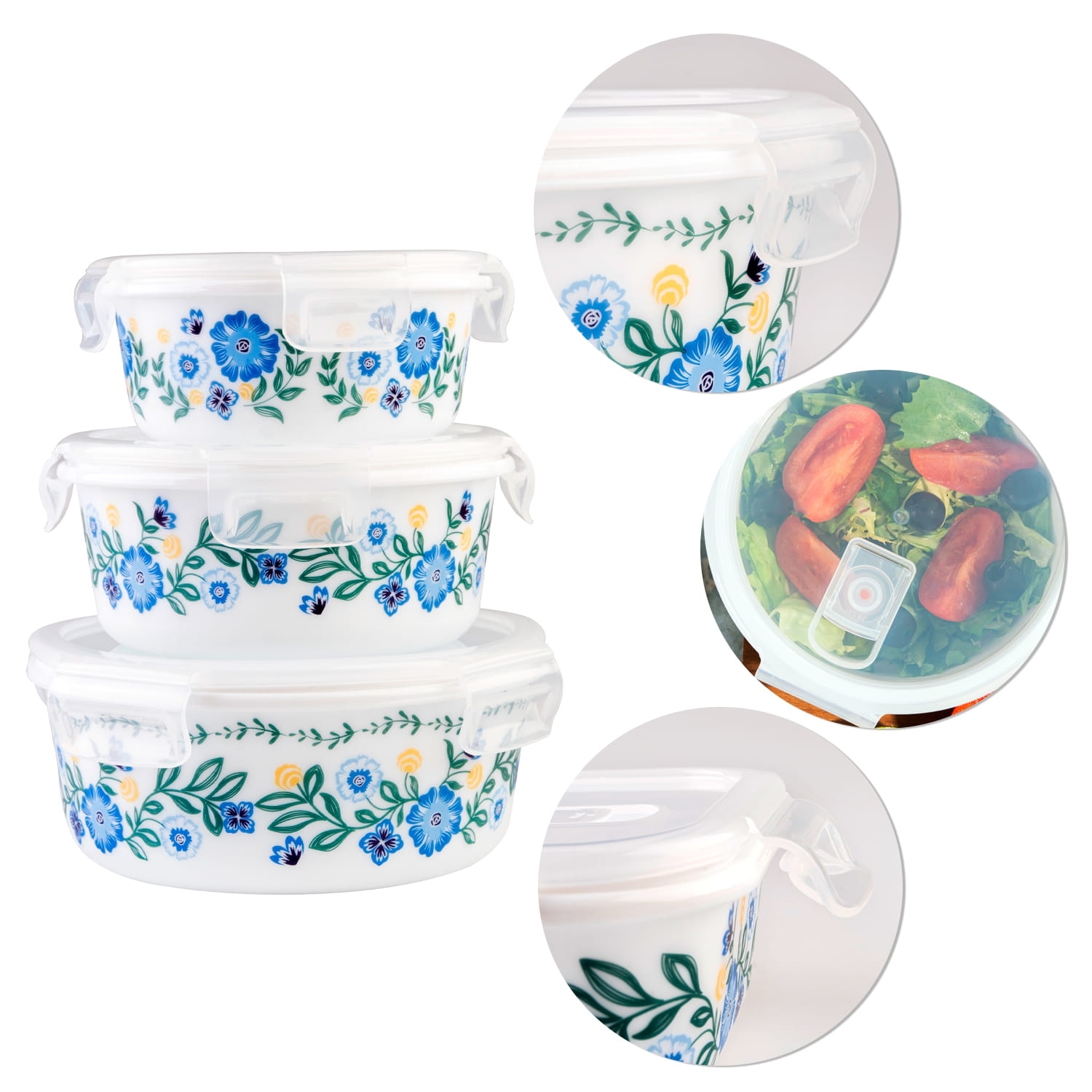 DuraHome Dóza skleněná hermetická, kulatá, malovaná sada 3ks