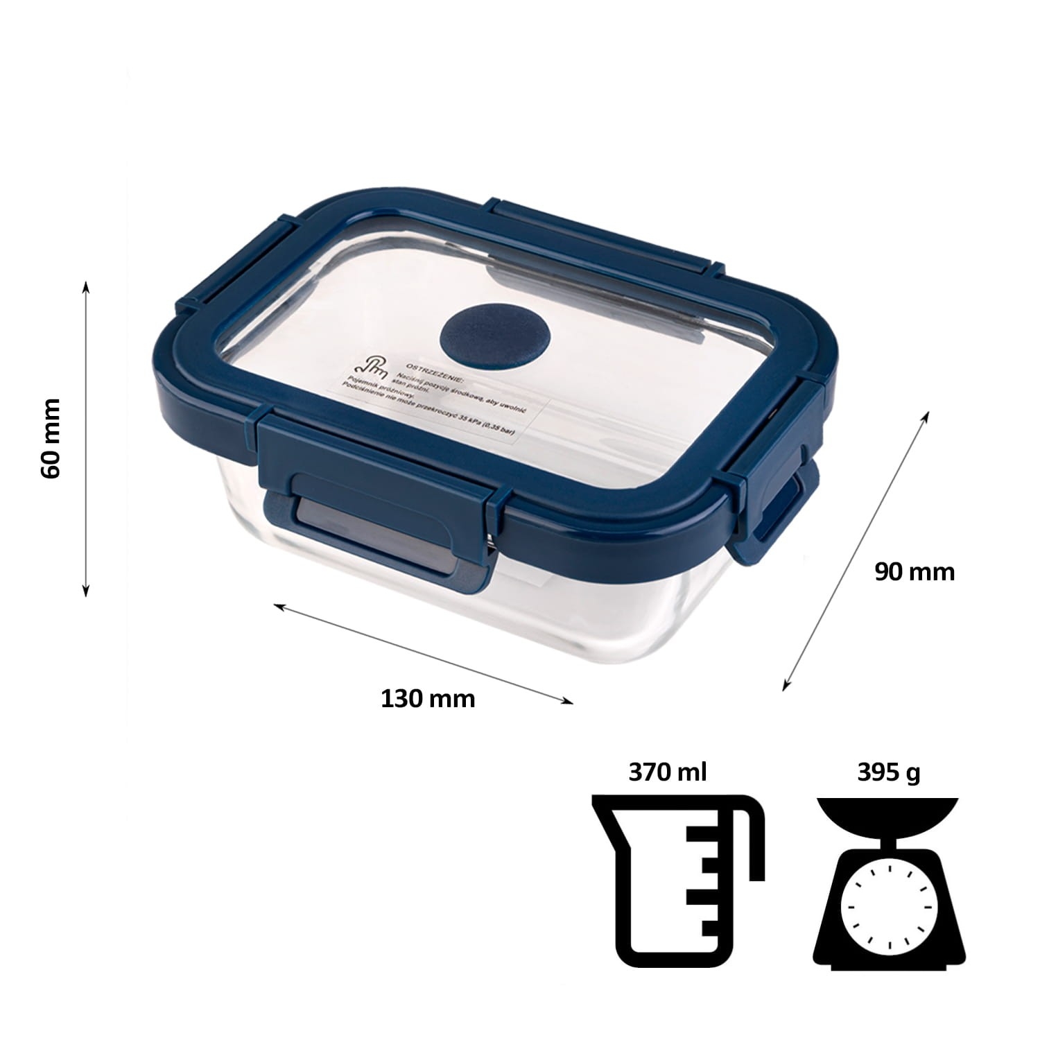 Praktická obdélníková skleněná vakuovací nádoba o objemu 370 ml je ideálním řešením pro uchování čerstvosti potravin. Spolehlivě chrání skladované produkty před vzduchem a vlhkostí a zároveň šetří místo díky kompaktnímu tvaru.
