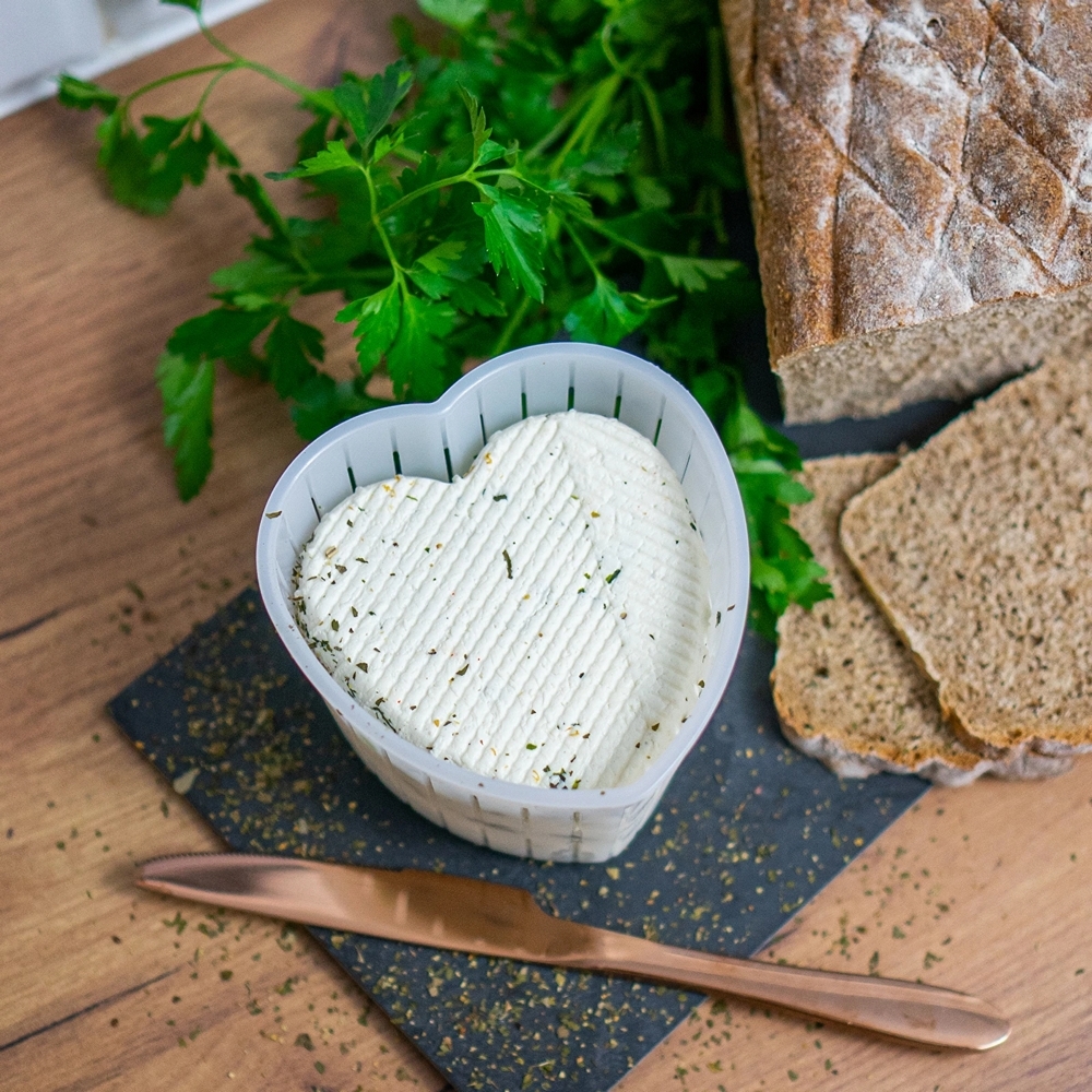 Použitím této formy sýr získá tvar srdce. Forma je vhodná pro 400 g hmoty.