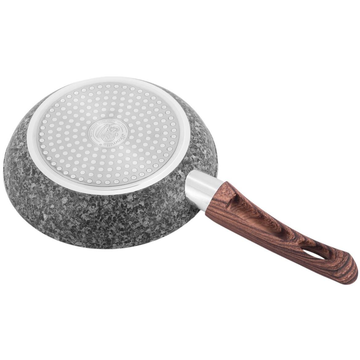 Granitová pánev o průměru 20cm s nepřilnavým povrchem odolným proti poškrábání a vysokým teplotám. Stěny a dno se rychle zahřejí a teplo udrží dlouho.