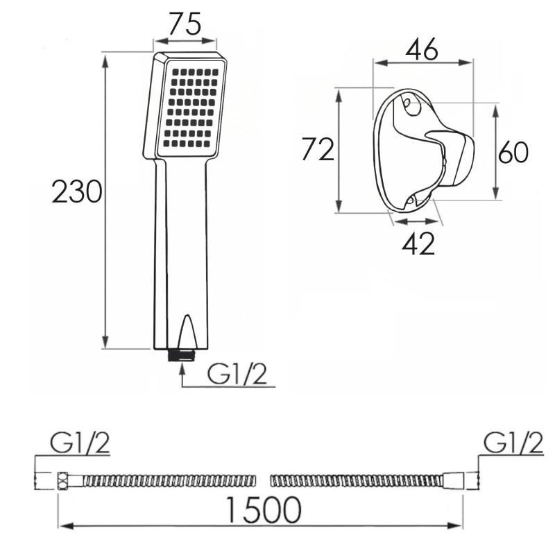 Sprchová hlavice s hadicí a nástěnným držákem: