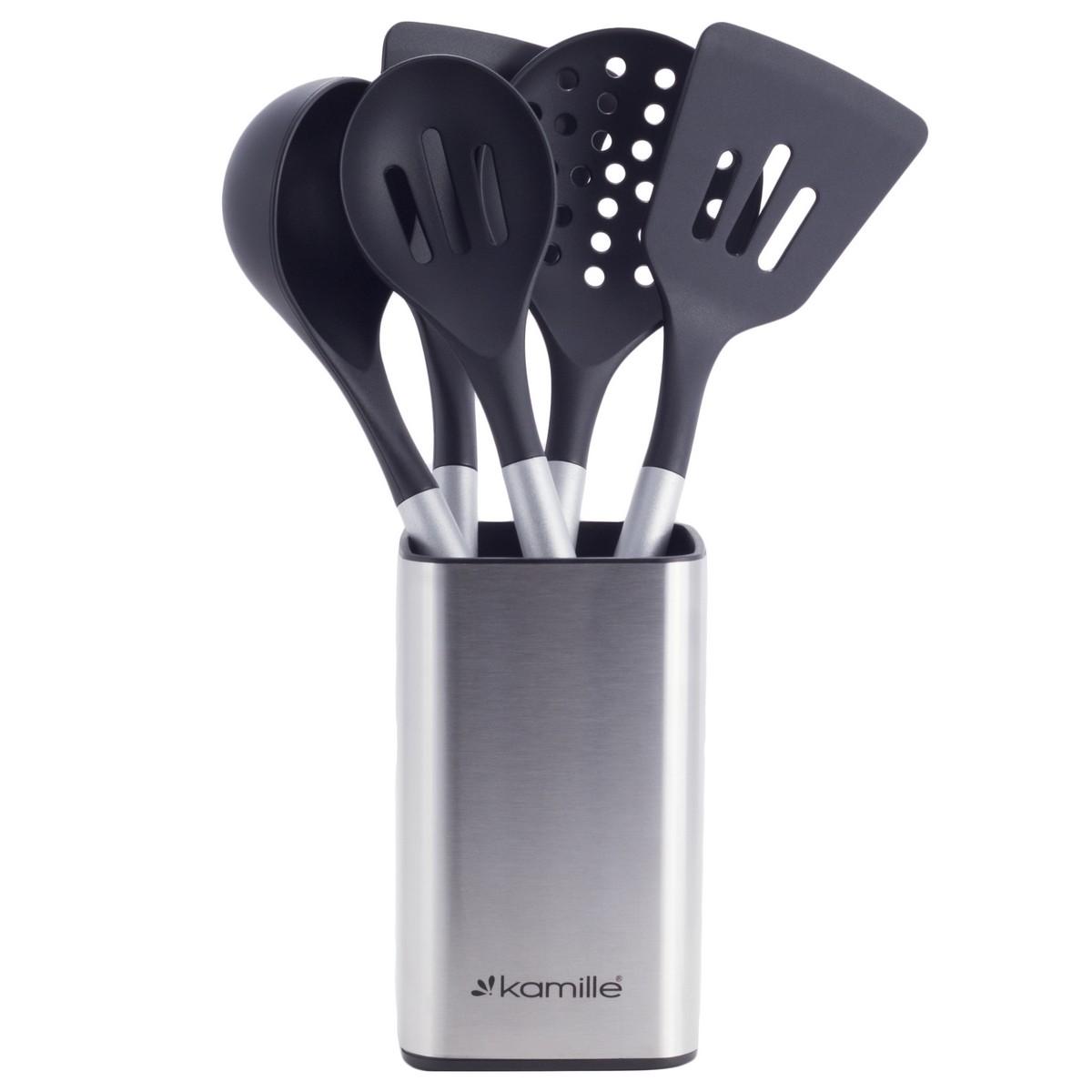 Šesti dílná sada kuchyňského náčiní ve stojánku.