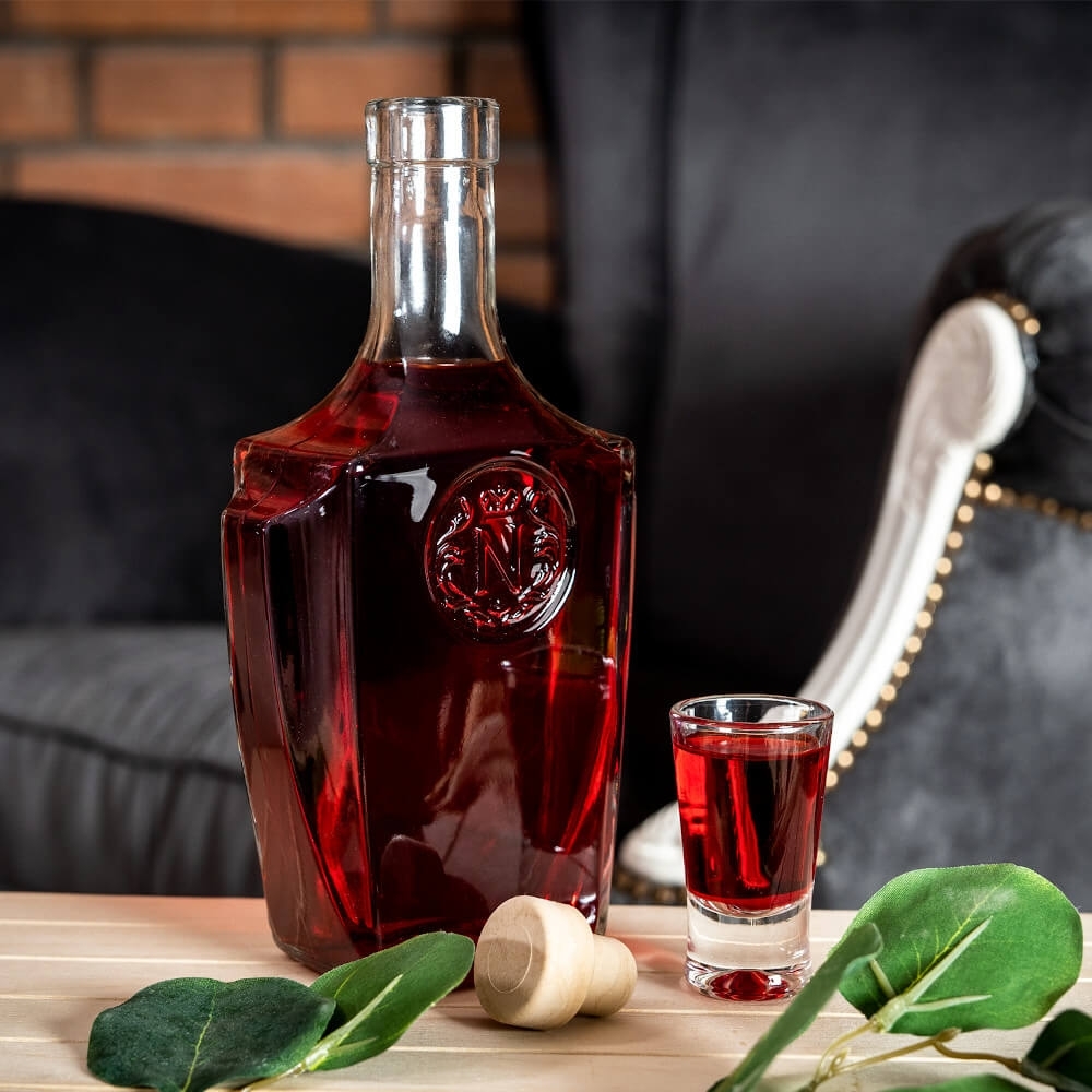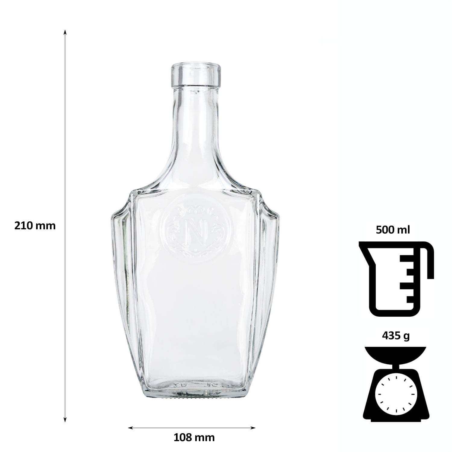 Elegantní skleněná láhev Bonaparte 500 ml kombinuje originální design a praktičnost. Její výrazný tvar se zdobeným jemným reliéfem dodává každé láhvi prestižní vzhled a zvýrazňuje luxusní charakter obsahu. Vyrobena z vysoce kvalitního skla, je ideální pro domácí tinktury, likéry, sirupy, destiláty či ochucené oleje.