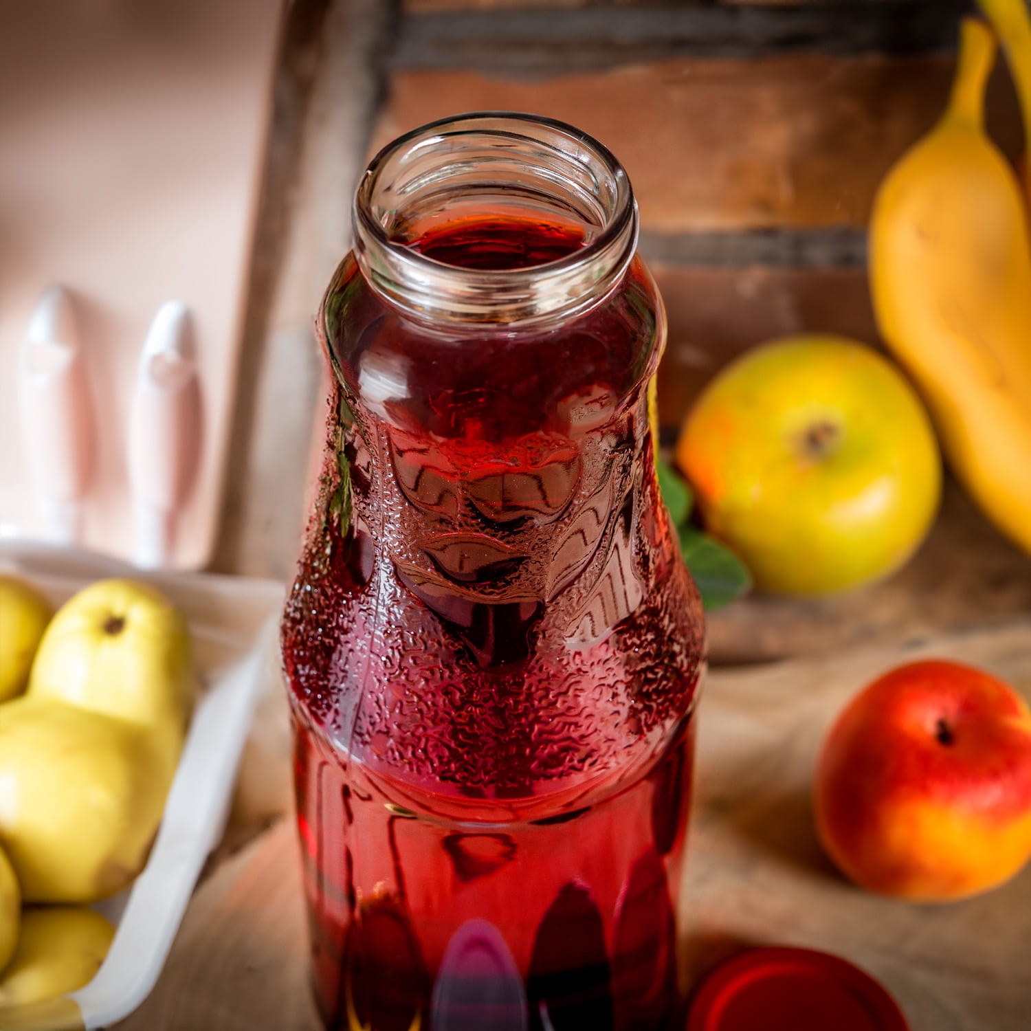 Sada 4ks skleněných láhví se šroubovacím uzávěrem, 43 mm.