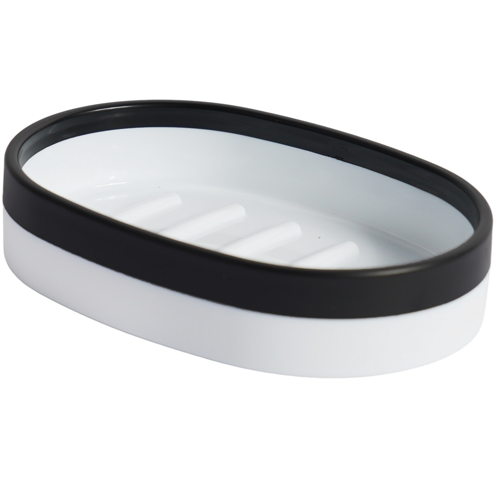Mýdlenka B&W je praktický a stylový doplněk do koupelny, který spojuje klasický design a moderní kontrastní zpracování. Bílé tělo s černým lemováním vytváří elegantní vzhled, který se snadno kombinuje s ostatními koupelnovými doplňky v černobílé sérii B&W. Vyrobena je z odolného ABS plastu v kombinaci s gumou, což zajišťuje stabilitu, snadnou údržbu a dlouhou životnost. Mýdlo bezpečně drží na místě a miska se snadno čistí.