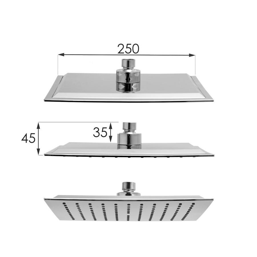 rozměry dešťové hlavice: 250x250 mm, 1-funkce (déšť),