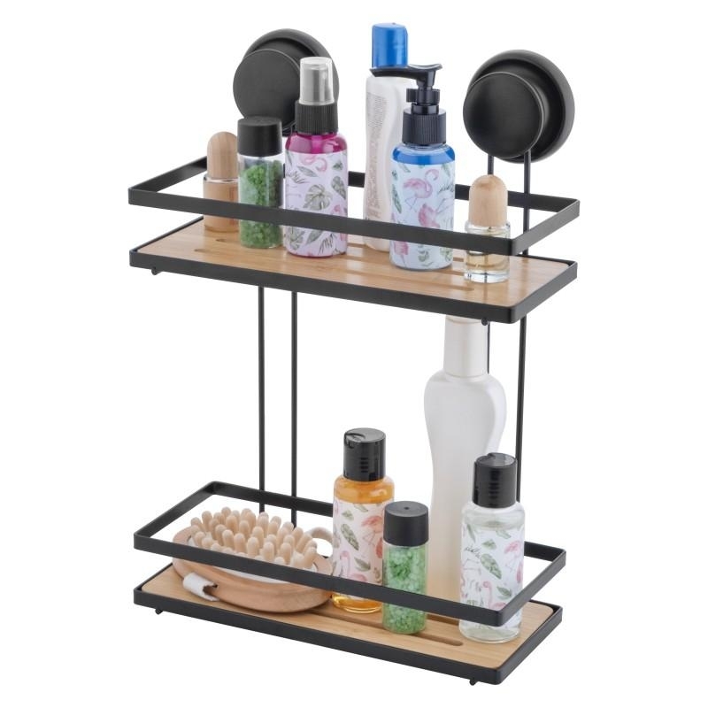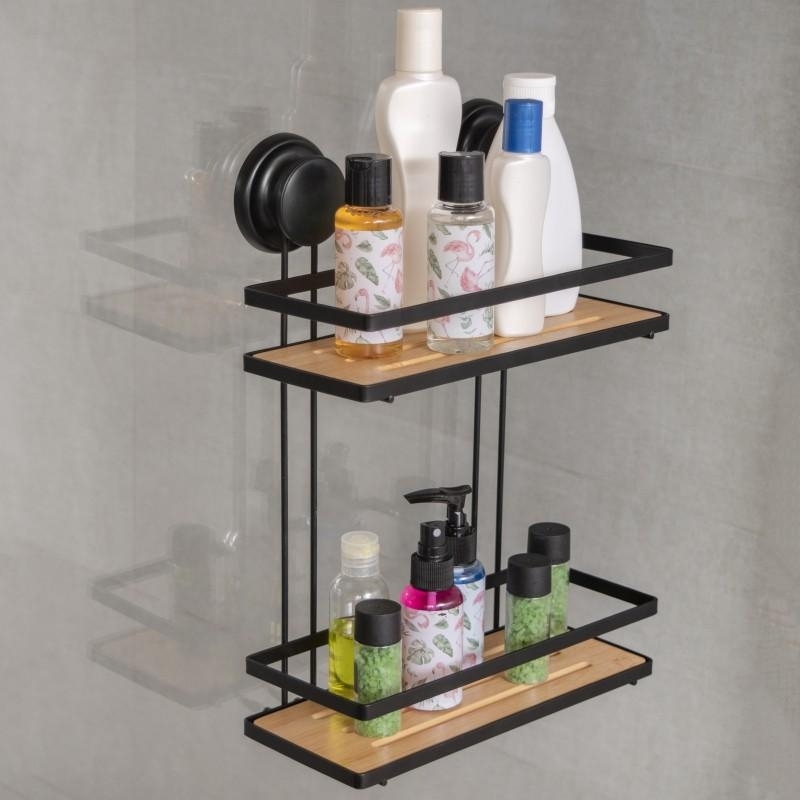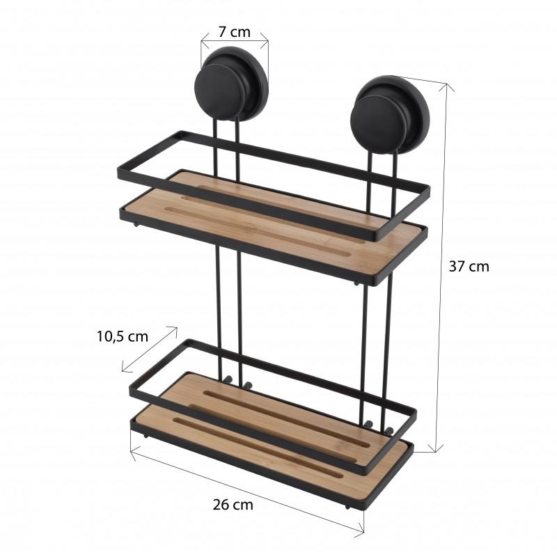 Dodejte své koupelně praktický a elegantní úložný prostor s dvoupatrovou poličkou Bambus 48575. Praktická drátěná police kombinuje černou práškově lakovanou ocel s přírodními bambusovými detaily, čímž vytváří stylový a moderní doplněk do koupelny.