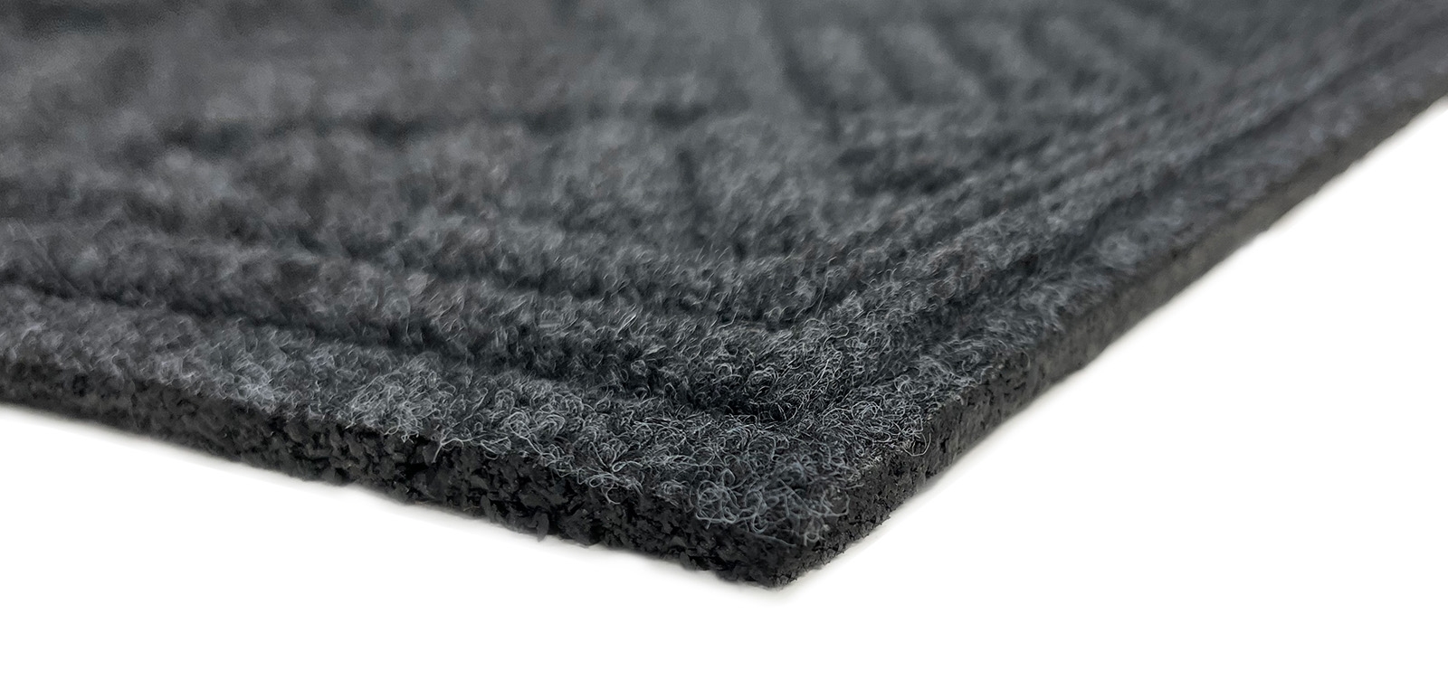 Vrchní část z polyesteru a spodní část z odolné gumy zaručují dlouhou životnost a snadnou údržbu. Reliéfní radiální vzor usnadňuje čištění bot a dodává rohoži moderní vzhled. Půlkruhový tvar doplňuje vstupní dveře a vytváří esteticky příjemný dojem.