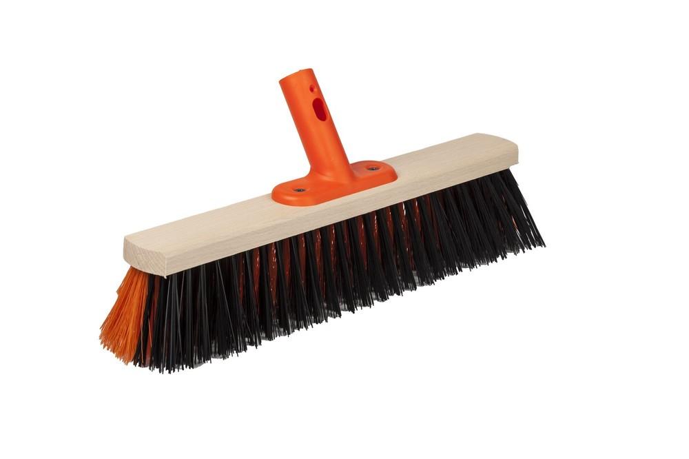 Hybridní kartáč kombinuje výhody zametacího kartáče a pouličního kartáče. 1/2 šířky tvoří měkký nylon jako má domácí koště a 1/2 šířky silný tvrdý nylon jako je silničním kartáči.
