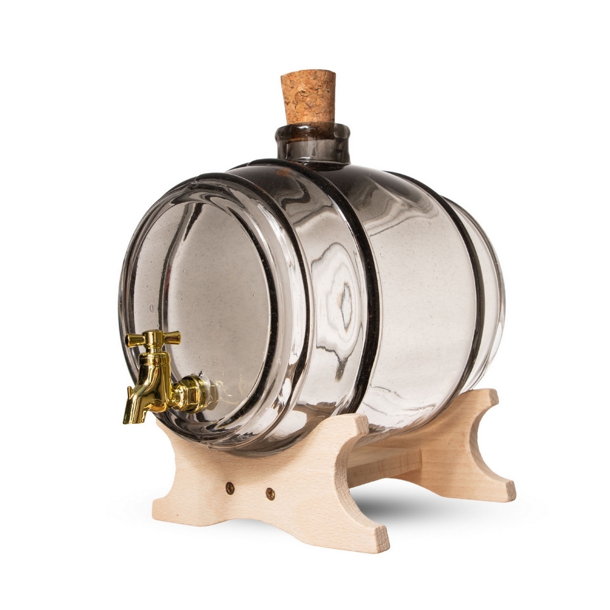 Stylový hladký skleněný soudek ŠTĚSTÍ LUX v grafitovém provedení s kohoutkem na pevném dřevěném stojanu je ideální volbou pro servírování domácích lihovin, likérů, džusů nebo osvěžujících nápojů. Díky svému elegantnímu a modernímu vzhledu zaujme na každém setkání – od rodinných oslav až po svatby a další slavnostní příležitosti.