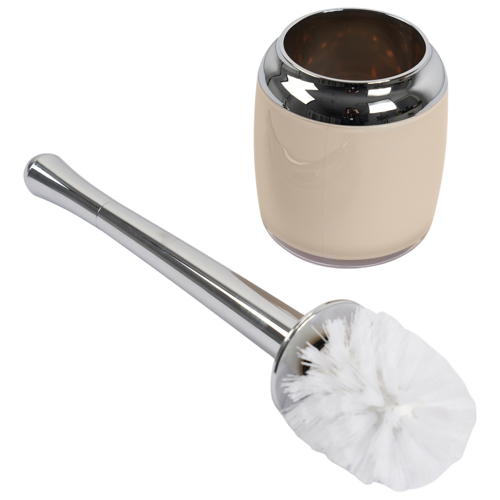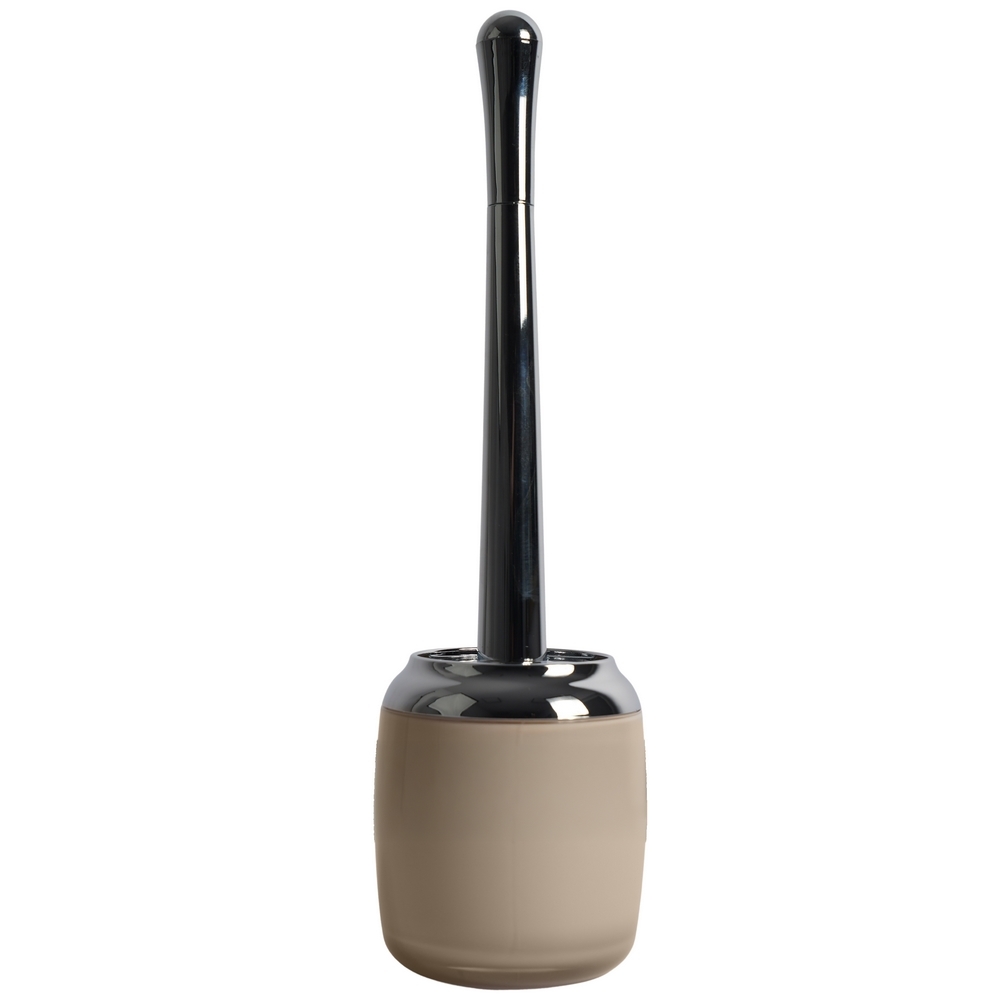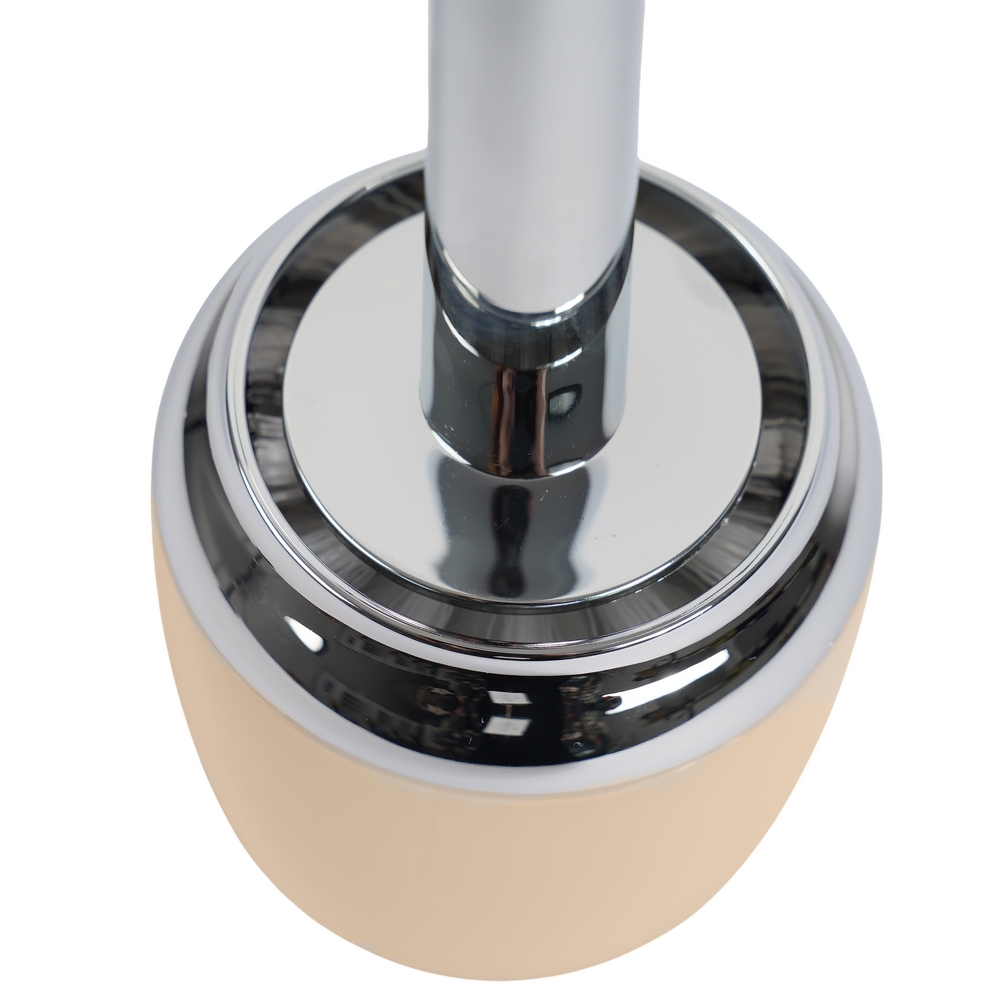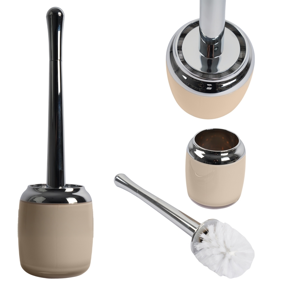 WC štětka TOLEDO je praktický a stylový doplněk do koupelny či toalety, který spojuje funkčnost a moderní design. Béžové provedení v kombinaci se stříbrnou povrchovou úpravou působí čistě, elegantně a snadno se začlení do různých interiérových stylů – od minimalistických až po přírodní. Tělo výrobku je vyrobeno z AS (akrylu), který je odolný, lehký a nenáročný na údržbu. Materiál dobře odolává vlhkosti a zachovává si dlouhodobě svůj vzhled. Štětka je navržena tak, aby zajistila efektivní čištění a zároveň hygienické uskladnění v uzavřeném stojanu.