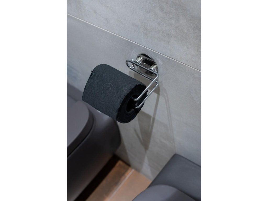 Držák je vyroben z kvalitního chromovaného drátu s lesklým povrchem. Jednoduchý tvar držáku se hodí do každé koupelny. Držák toaletního papíru je samolepicí což znamená, že nepotřebujete žádné šroubky a vrtačku. Držák můžete přilepit do jakékoliv výšky, která Vám vyhovuje.