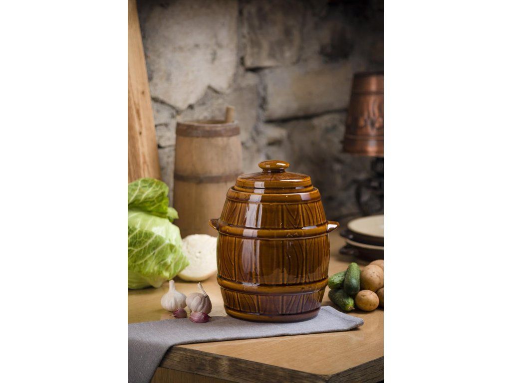 Skladování zeleniny ve vzduchotěsných nádobách je osvědčenou a zároveň nejlepší metodou pro zachování její čerstvé vůně a dobré chuti. V zimě jsou zelí nebo nakládané okurky z keramické nádoby nenahraditelným zdrojem přírodních vitamínů.