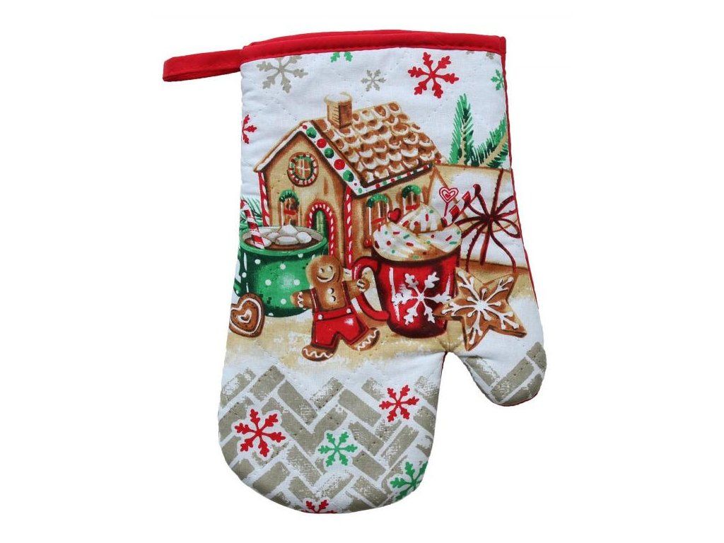 Kuchyňská rukavice s originálním vánočním potiskem, vyrobená ze 100% bavlny. Vybavená jak magnetem tak poutkem.