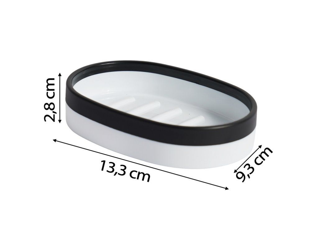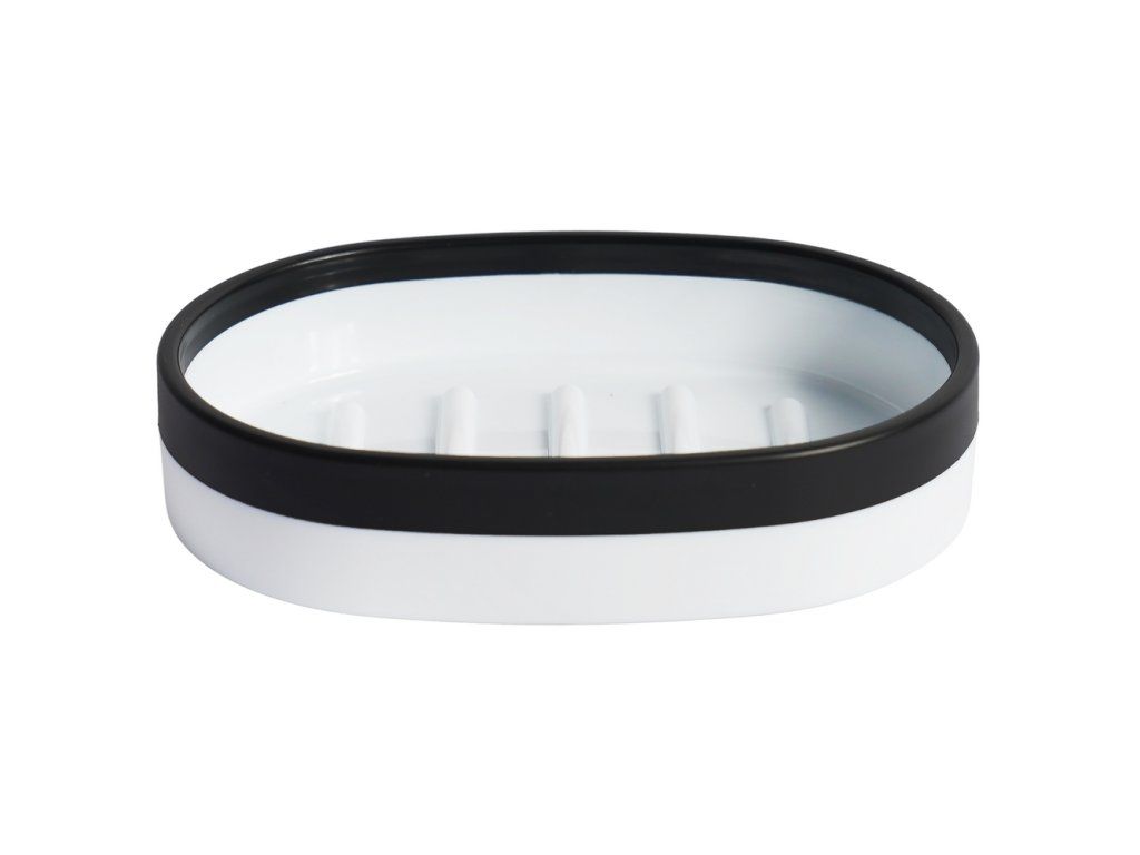 Mýdlenka B&W je praktický a stylový doplněk do koupelny, který spojuje klasický design a moderní kontrastní zpracování. Bílé tělo s černým lemováním vytváří elegantní vzhled, který se snadno kombinuje s ostatními koupelnovými doplňky v černobílé sérii B&W. Vyrobena je z odolného ABS plastu v kombinaci s gumou, což zajišťuje stabilitu, snadnou údržbu a dlouhou životnost. Mýdlo bezpečně drží na místě a miska se snadno čistí.