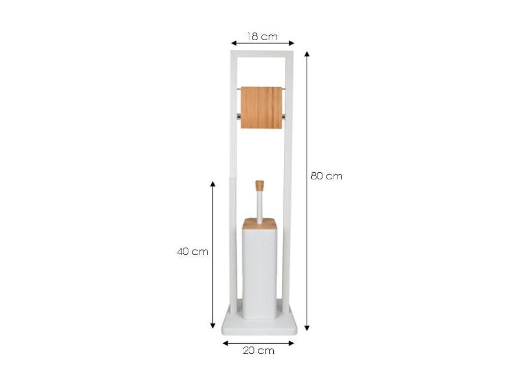 rozměr: celková výška stojanu : 80 cm, rozměr základny : 20 x 20 cm, celková výška WC kartáče : 40 cm, výška nádoby na WC kartáč : 27 cm, šířka x délka nádoby na kartáč: 9,5 cm x 9,5 cm, šířka mezi rameny stojanu: 13,5 cm, tloušťka rámu stojanu : 2 cm.
