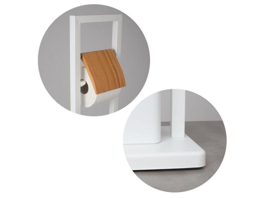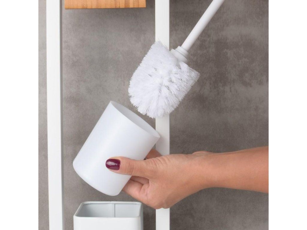 v bílé barvě v matném provedení s bambusovými prvky, bílá barva štětin na WC štětce,