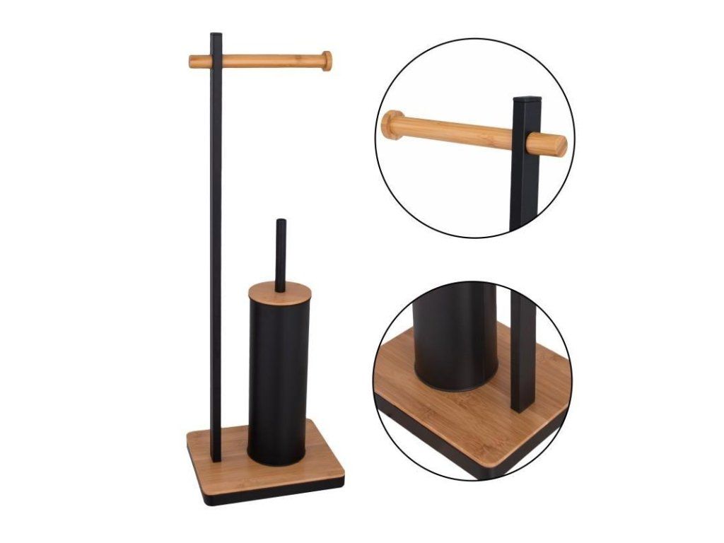 v černé barvě v matném provedení s prvky bambusu, černá barva štětin na WC štětce,