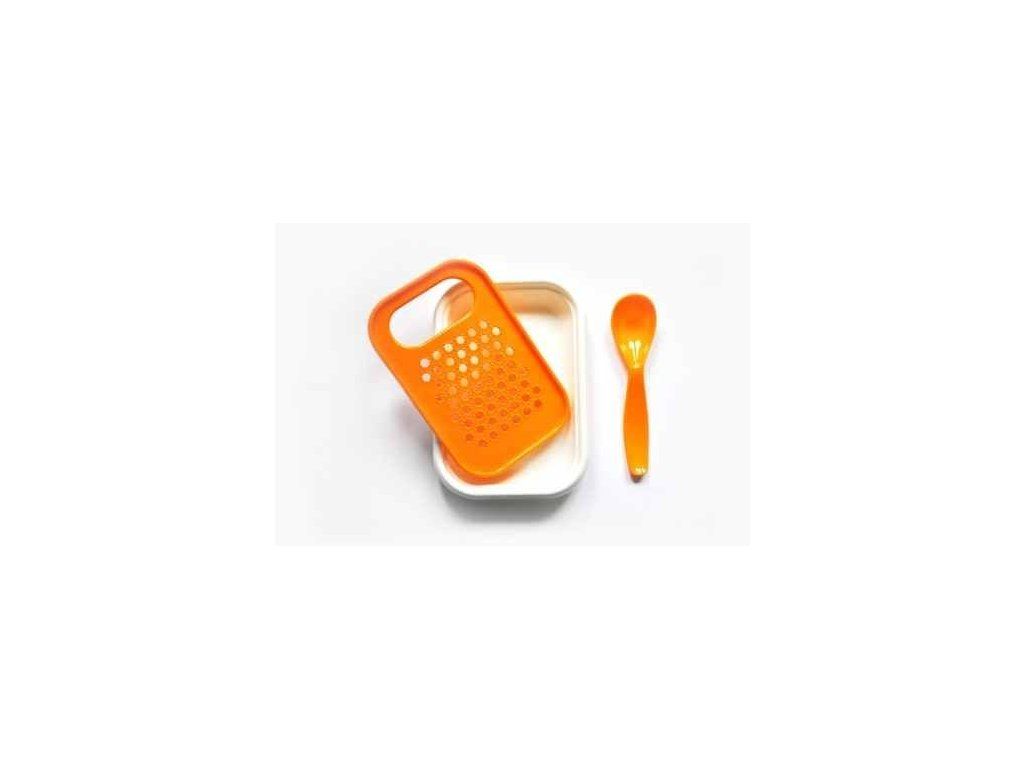 Struhadlo MINI je ideálním pomocníkem na cesty: součástí balení je i miska se lžičkou pro jednoduché nastrouhání a konzumaci ovoce, zeleniny či dalších potravin. Dostupné v různých barevných variantách: červená, fialová, modrá, oranžová, zelená.