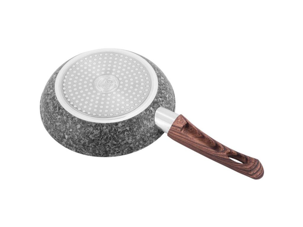 Granitová pánev o průměru 20cm s nepřilnavým povrchem odolným proti poškrábání a vysokým teplotám. Stěny a dno se rychle zahřejí a teplo udrží dlouho.