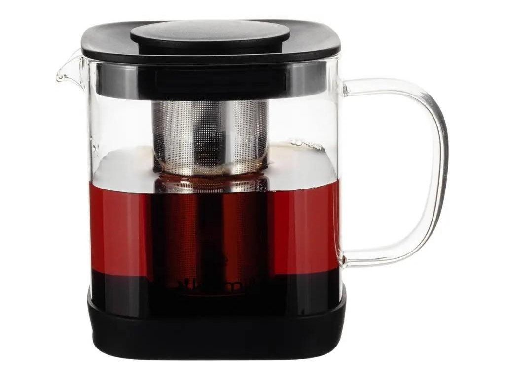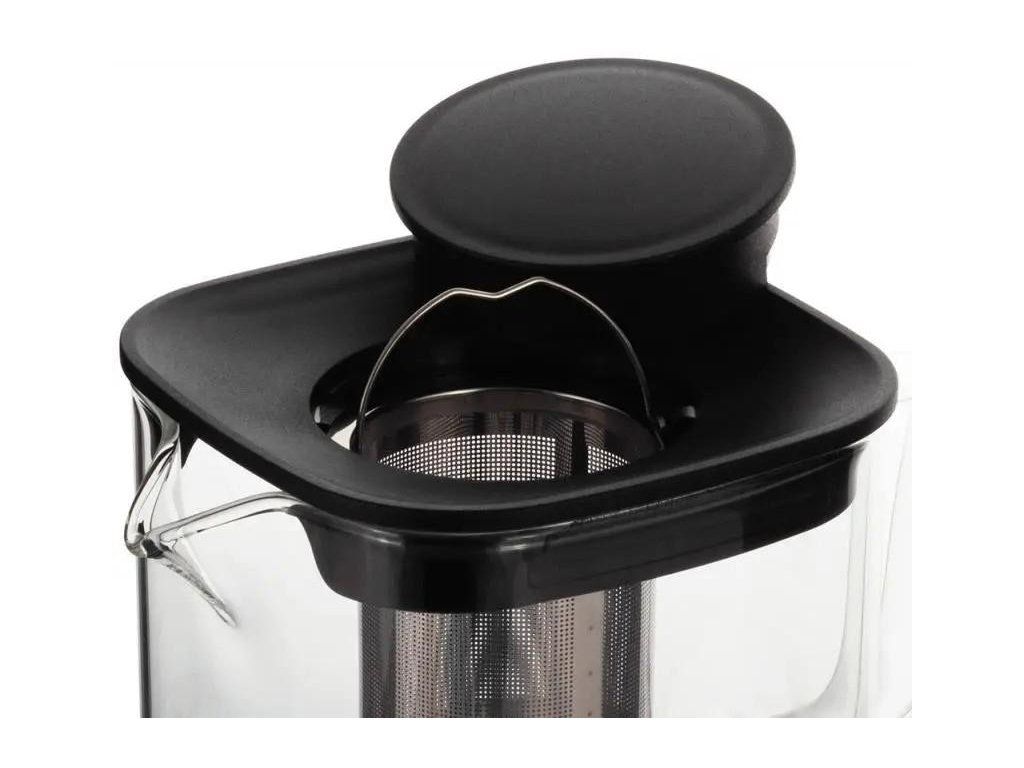 Skleněná konvice na čaj s nerezovým sítkem o objemu 1000ml s praktickou rukojetí a ochranným silikonovým prvkem na dně konvice.