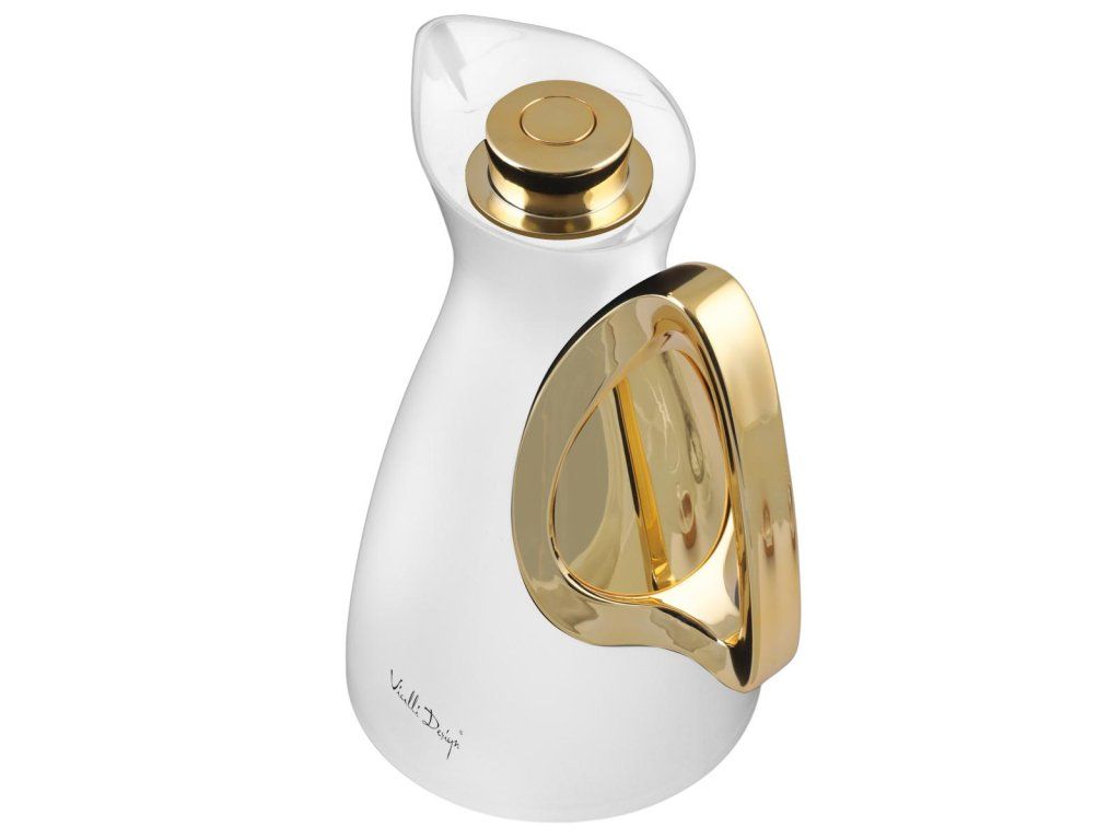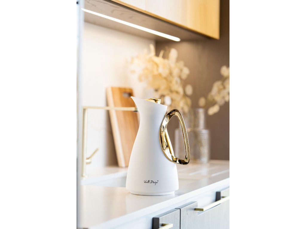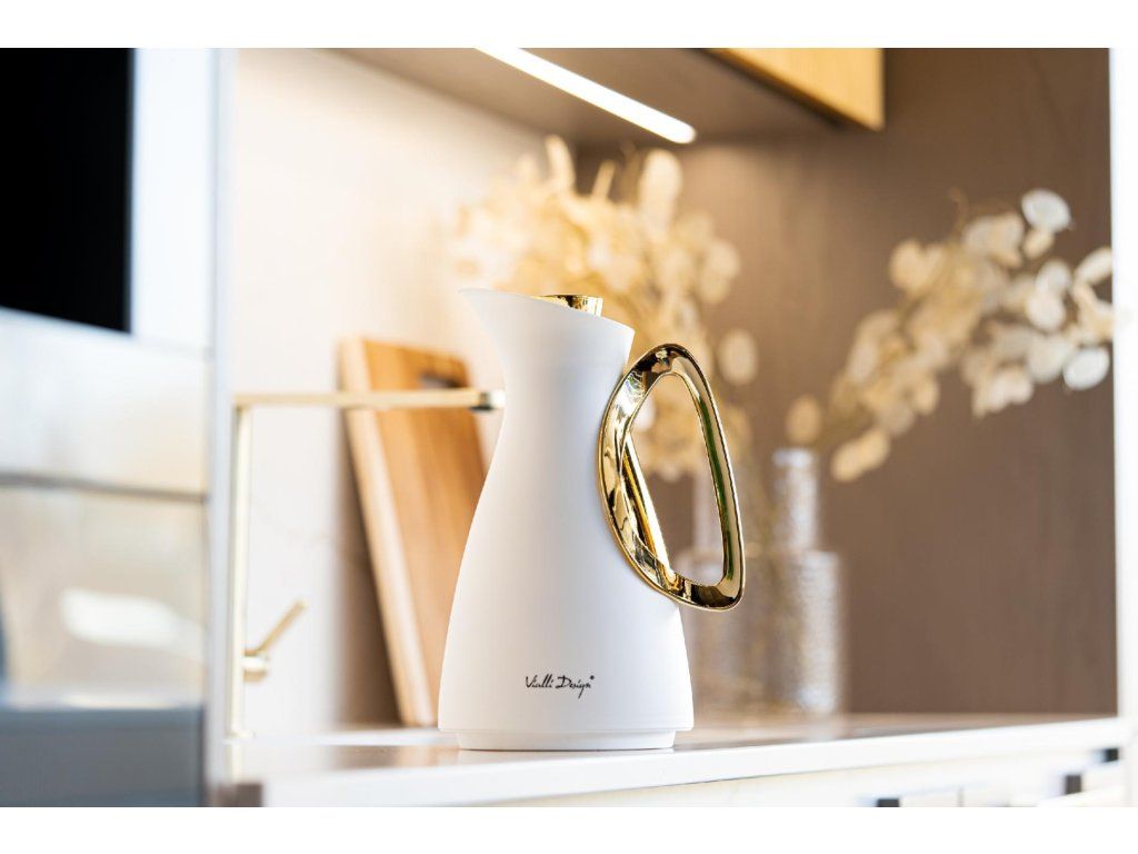Vialli Design Termoska na nápoje se skleněnou vložkou, 1l bílo-zlatá, ALESSIA 1043
